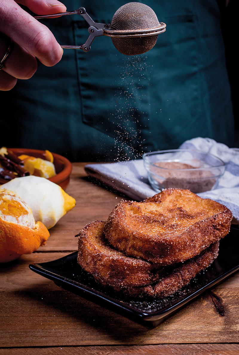 sobre trinxat de patata y col, salsa de mole y totopo.